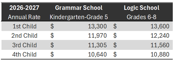 Below is a list of costs associated with attending Our Savior Lutheran School for the 2026-2027 school year. Tuition includes the cost of textbooks and workbooks, all academic fees, field trips, and class trips.